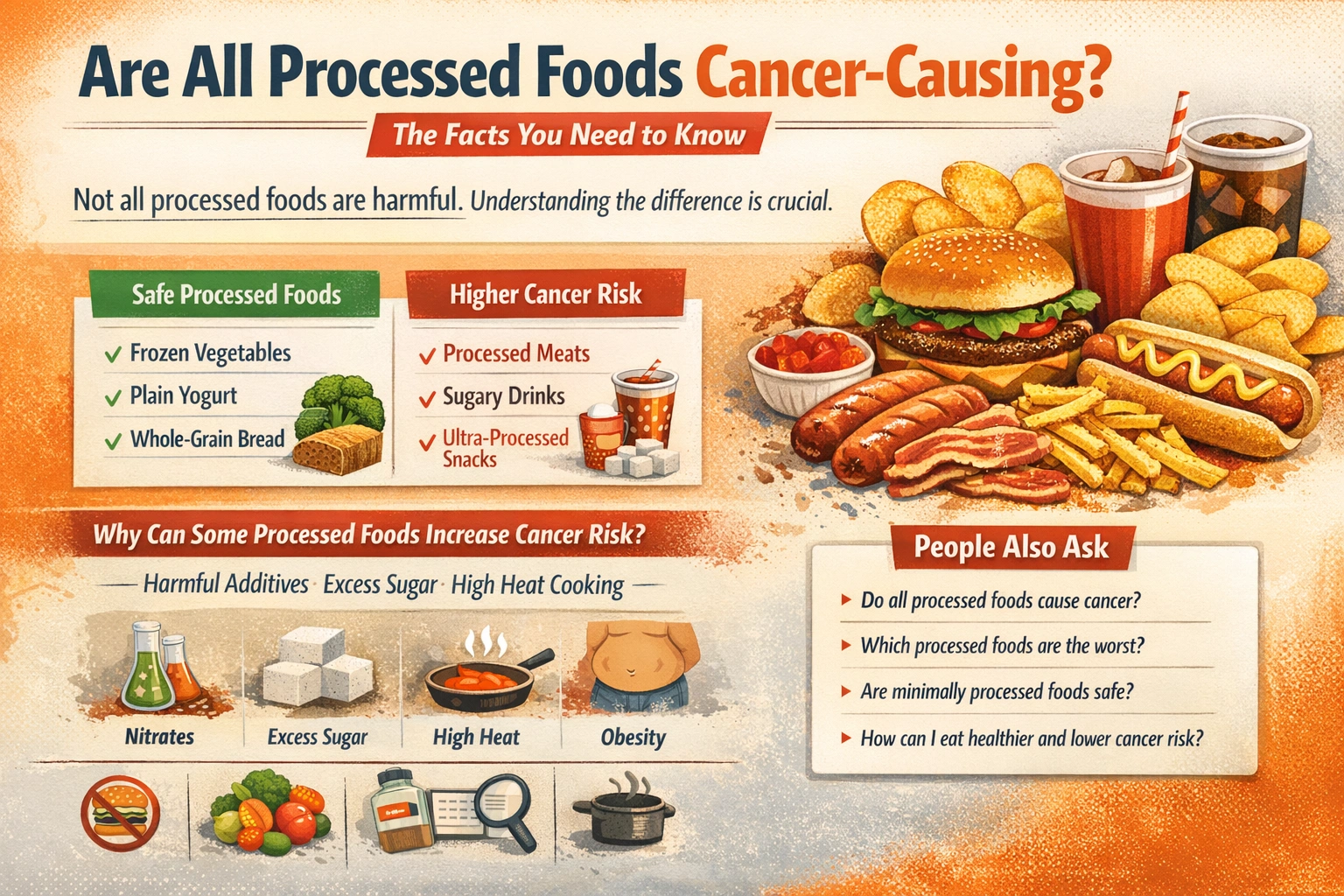 Are All Processed Foods Cancer-Causing? No, not all processed foods are cancer-causing. The risk depends on the level of processing and ingredients, with ultra-processed foods being the most strongly linked…