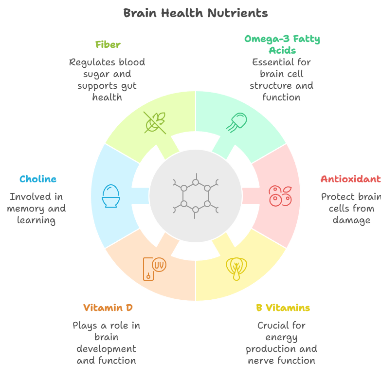 • Omega-3 Fatty Acids: These essential fats are critical for brain structure and function. They have anti-inflammatory properties and may help protect against cognitive decline.