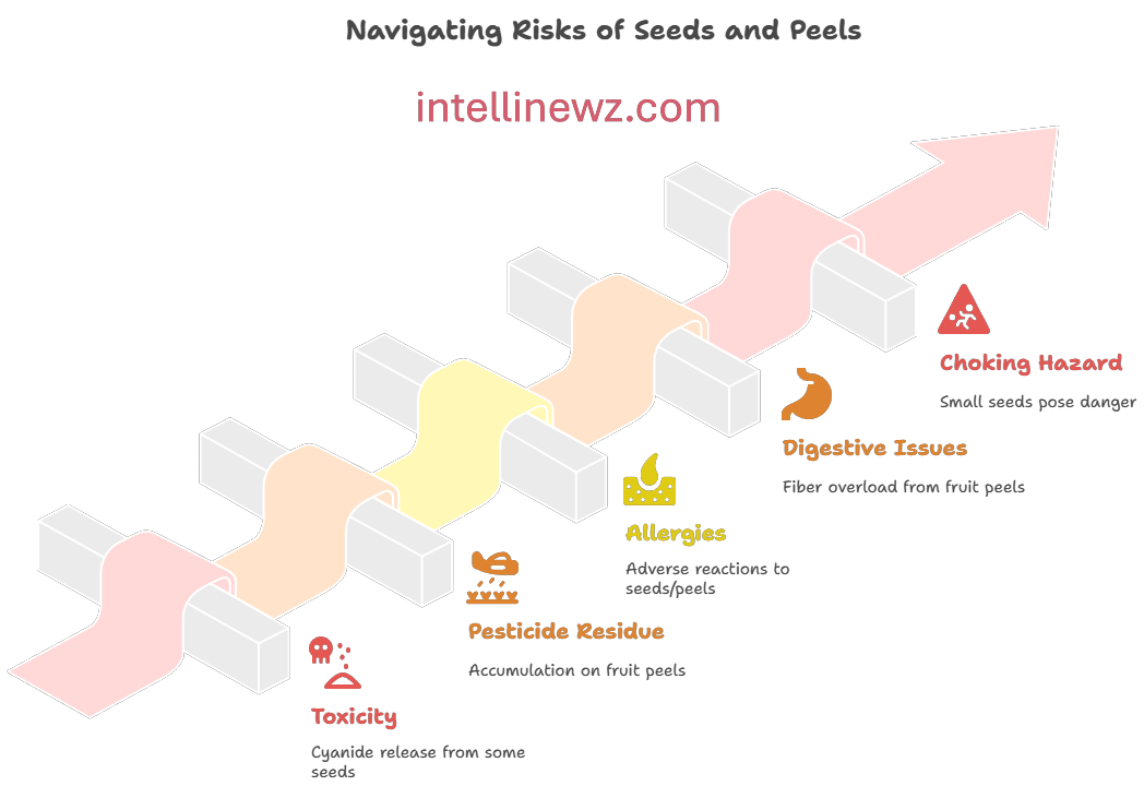 • Avoid stone fruit pits (like peach or cherry) which contain natural cyanide compounds.
