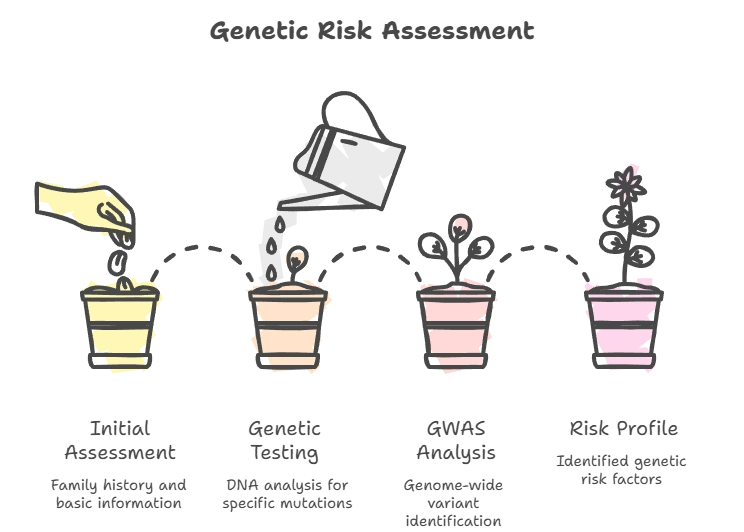 Genetic risk assessment involves analyzing DNA to identify genetic variants associated with an increased risk of disease. It is performed through several methods: