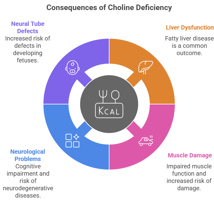 - Deficiency signs: Memory issues, mood swings, liver fat accumulation.