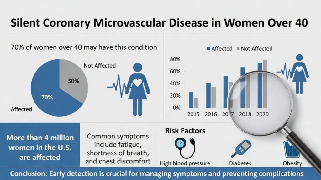 Silent coronary microvascular disease is not a “women’s problem” to ignore—it is a major, under-recognized driver of heart disease in women over 40. Thanks to improved awareness, specialized testing, and guideline updates, more women are now being diagnosed and effectively treated. The message is clear: chest pain (or even vague symptoms) with “normal” arteries is never normal. Talk to your doctor about microvascular disease if you’re over 40 and experiencing unexplained fatigue, breathlessness, or discomfort.