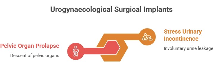 Urogynaecological surgical implants, most commonly surgical mesh, are medical devices used to provide support to weakened or damaged tissues in the pelvic floor. They are primarily used in the surgical management of: