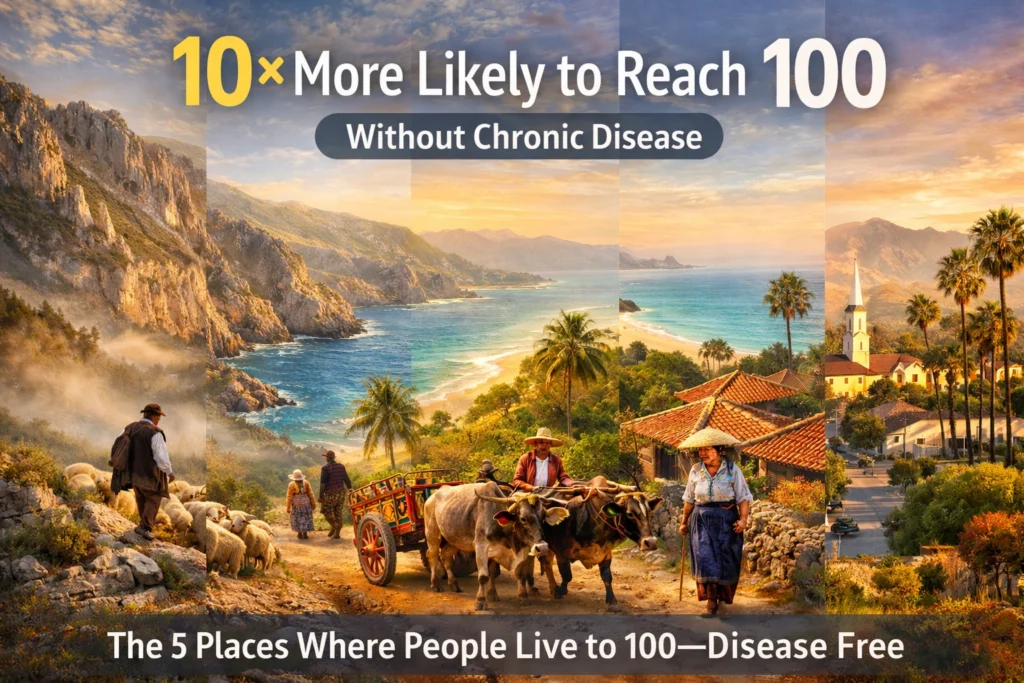 These “Blue Zones” have up to 10 times more centenarians than the U.S. average — and many reach 90 or 100 without major chronic illness.
