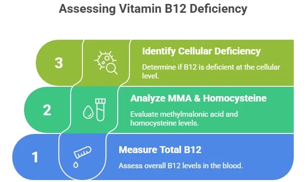 2. Metabolic Marker Tests: • MMA & Homocysteine: Elevation indicates functional B12/folate deficiency at the cellular level.