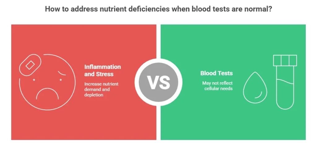 # The False Deficiency Trap: Your Questions Answered Below are answers to the most common questions about why standard blood tests can miss critical cellular nutrient deficiencies. Click on any question to reveal the detailed answer. ## General Understanding & BasicsWhat exactly is the “False Deficiency” trap?